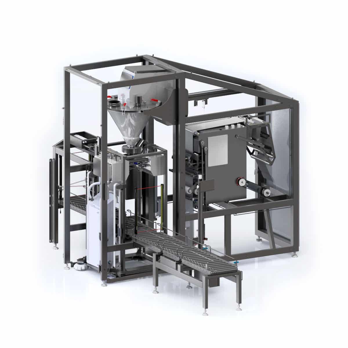 Zsákos porok és granulátumok automatikus töltésére. Töltősúly 1 kg-tól 50 kg-ig terjed. Zsák automatikus formálása (rögzítéssel vagy anélkül) filmtekercsből.